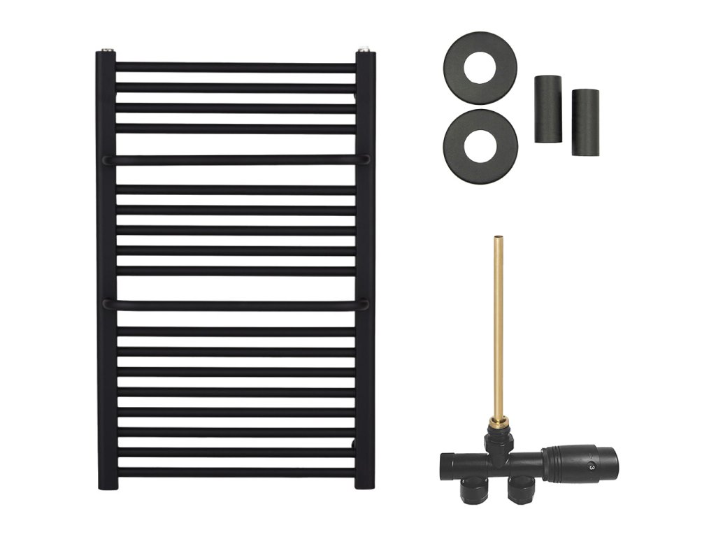 CERANO - Fürdőszobai radiátor szett Antonio - központi fűtés - oldalsó egypontos csatlakozás - 484W - matt fekete - 860x550 mm