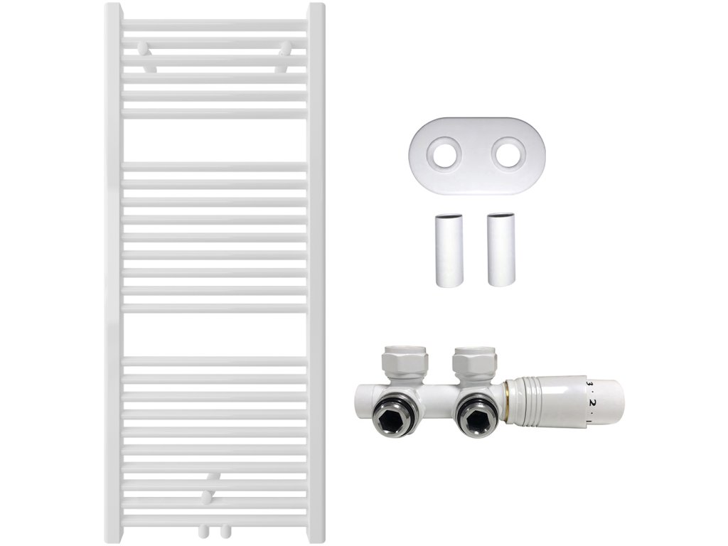 CERANO - Lincoln fürdőszobai radiátor szett - központi fűtés - központi csatlakozás 50 mm - 366W - fényes fehér - 1200x500 mm