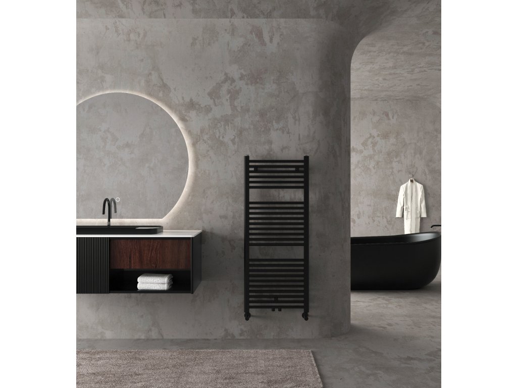 CERANO - Lincoln fürdőszobai radiátor szett - központi fűtés - központi csatlakozás 50 mm - 366W - matt fekete - 1200x500 mm