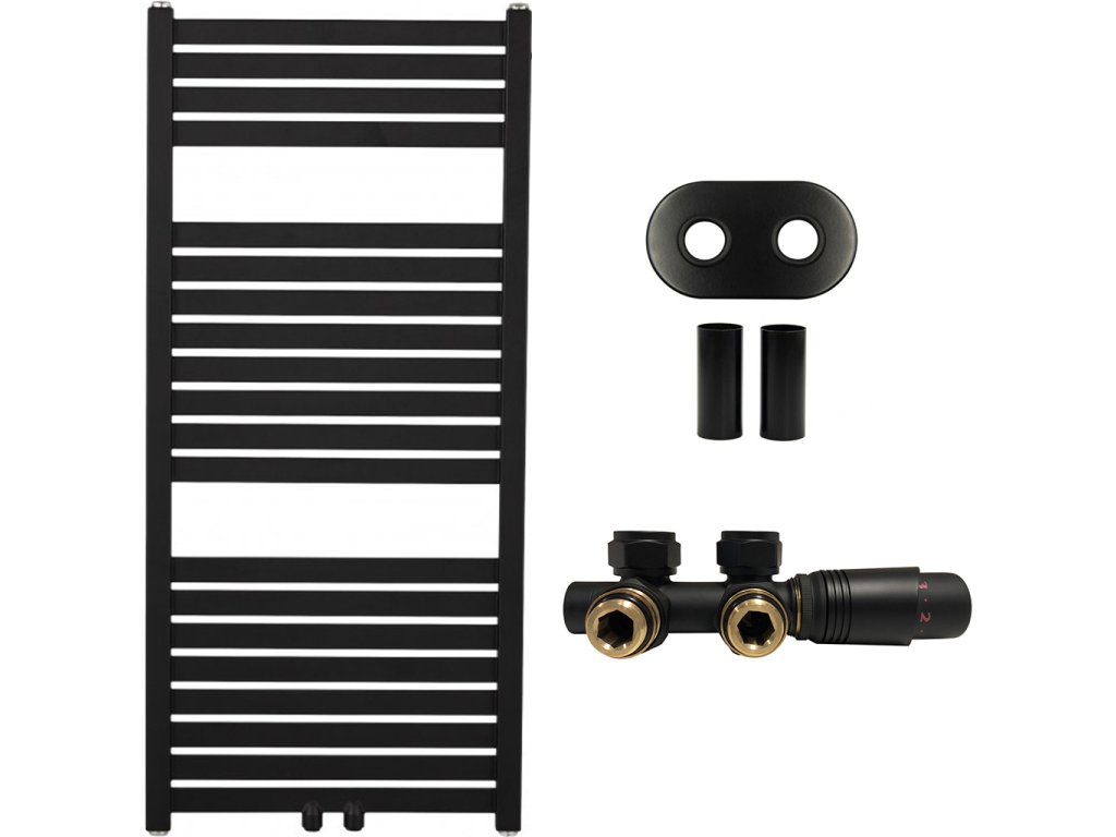 CERANO - Luigino fürdőszobai radiátor szett - központi fűtés - központi csatlakozás 50 mm - 300W - matt fekete - 970x450 mm
