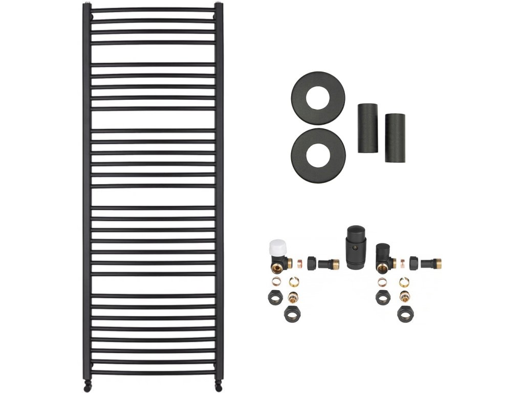CERANO - Stefano fürdőszobai radiátor szett - központi fűtés - oldalsó csatlakozás - 773W - matt fekete - 1460x650 mm