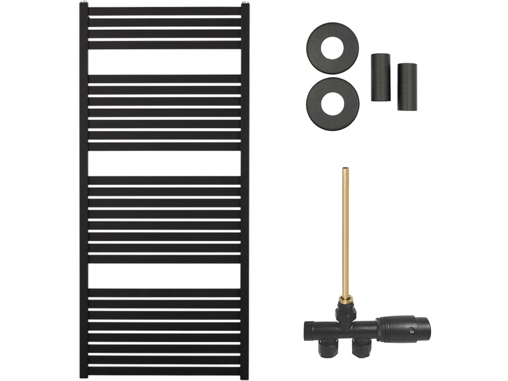 CERANO - Vincenzo fürdőszobai radiátor szett - központi fűtés - oldalsó egypontos csatlakozás - 600W - matt fekete - 1330x600 mm