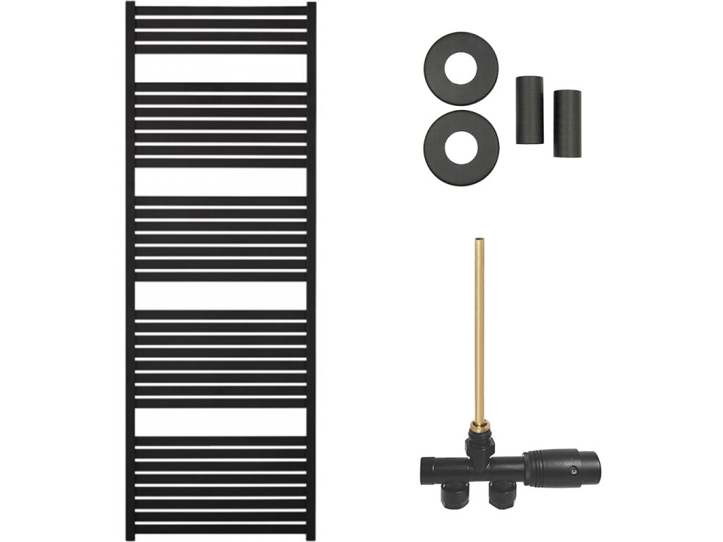 CERANO - Vincenzo fürdőszobai radiátor szett - központi fűtés - oldalsó egypontos csatlakozás - 800W - matt fekete - 1690x600 mm