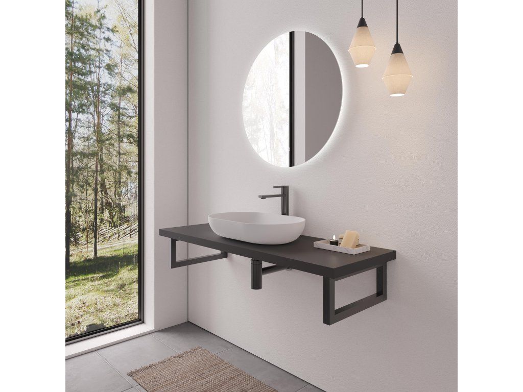CERANO - Navira Pro mosdópult + 2 konzol a pult alatt - matt fekete - 80x46x3,6 cm