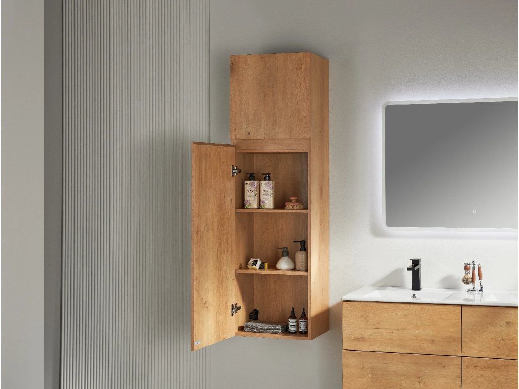 CERANO - Carole fürdőszobaszekrény - magas - mézes tölgyfa - 45x150x34 cm