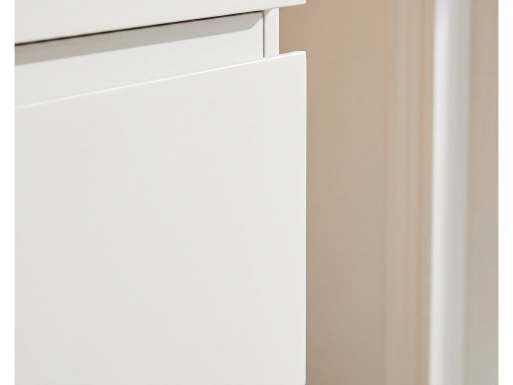 A szekrény falra szerelhető, és állítható szerelvényekkel van felszerelve, amelyek a szekrény testén a felső fríz alatt találhatók, lehetővé téve a magasság és a sík beállítását. A fiókban egy rejtett kivágás található a mosdó szifonjának beépítéséhez.
