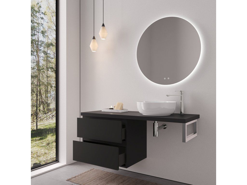 CERANO - Carole fürdőszobaszekrény - matt fekete + Navira Pro mosdópult - 36 mm + króm konzol - 140x46x56,6 cm