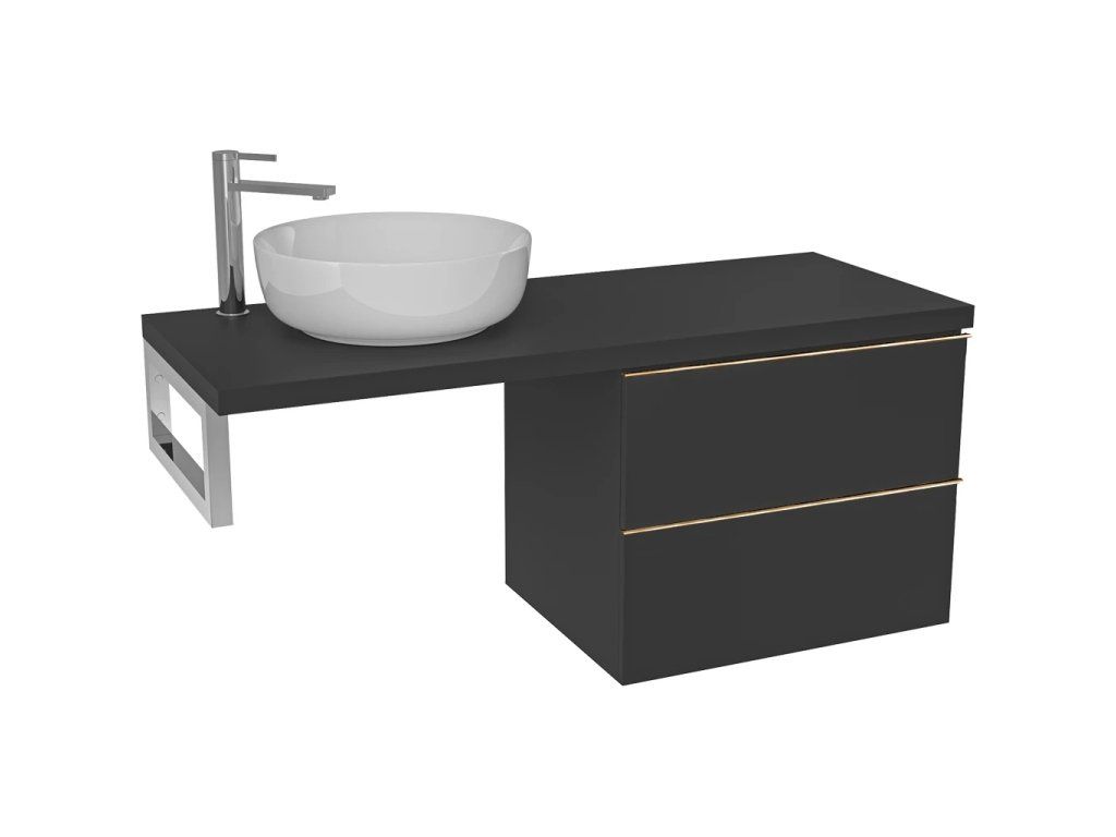 CERANO - Navira Pro mosdólap - 121x46,5x3,6 cm - Velora szekrény 59 cm - matt fekete, arany fogantyú - króm konzol