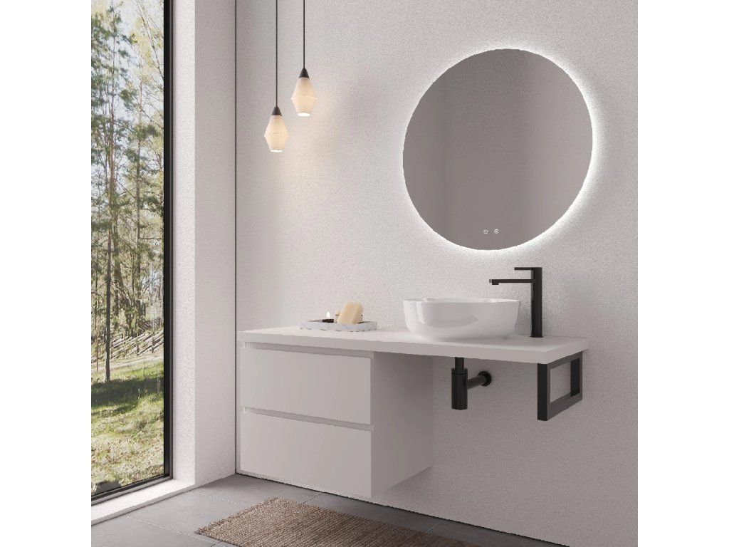 A szekrény falra szerelhető, és állítható szerelvényekkel van felszerelve, amelyek a szekrény testén a felső fríz alatt találhatók, lehetővé téve a magasság és a sík beállítását. A fiókban egy rejtett kivágás található a mosdó szifonjának beépítéséhez.