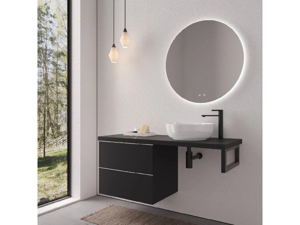 CERANO - Navira Pro mosdópult - 161x46,5x3,6 cm - Velora szekrény 79 cm - matt fekete, króm fogantyú - fekete konzol