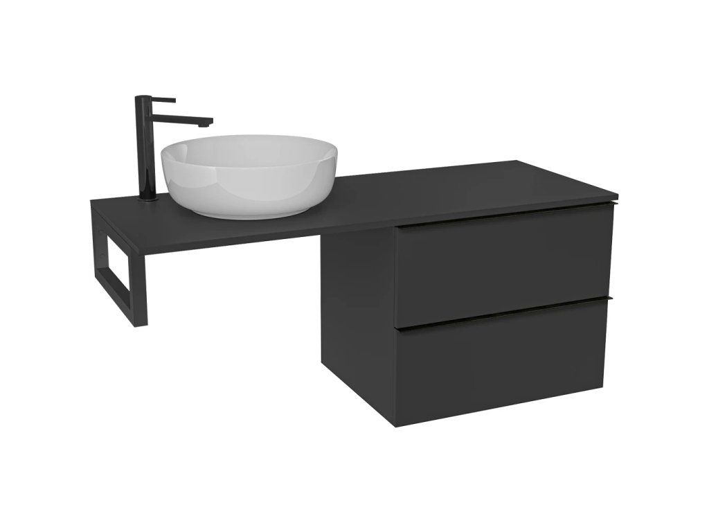 CERANO - Navira Slim mosdópult - 121x46,5x1,8 cm - Velora szekrény 59 cm - matt fekete, fekete fogantyú - fekete konzol
