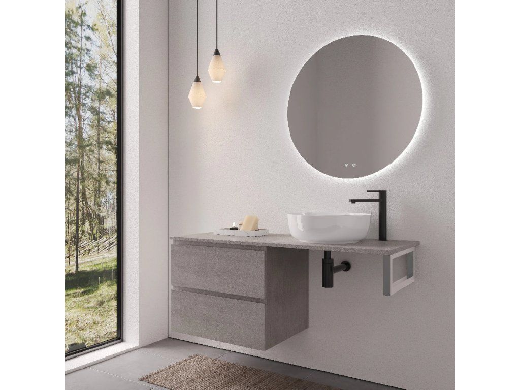 CERANO - Navira Slim mosdópult - 141x46,5x1,8 cm - Carole szekrény 69 cm - betonszürke - króm konzol