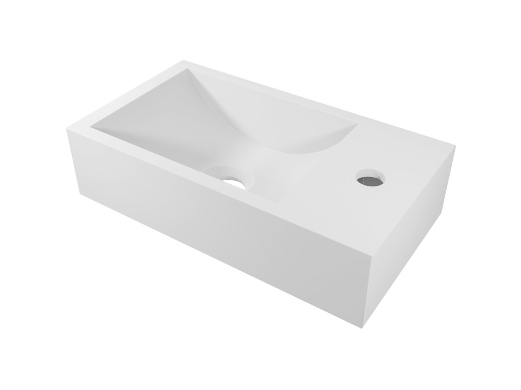 CERANO - Öntött márvány mosdó Teo - jobb oldali fali - matt fehér - 40x22 cm