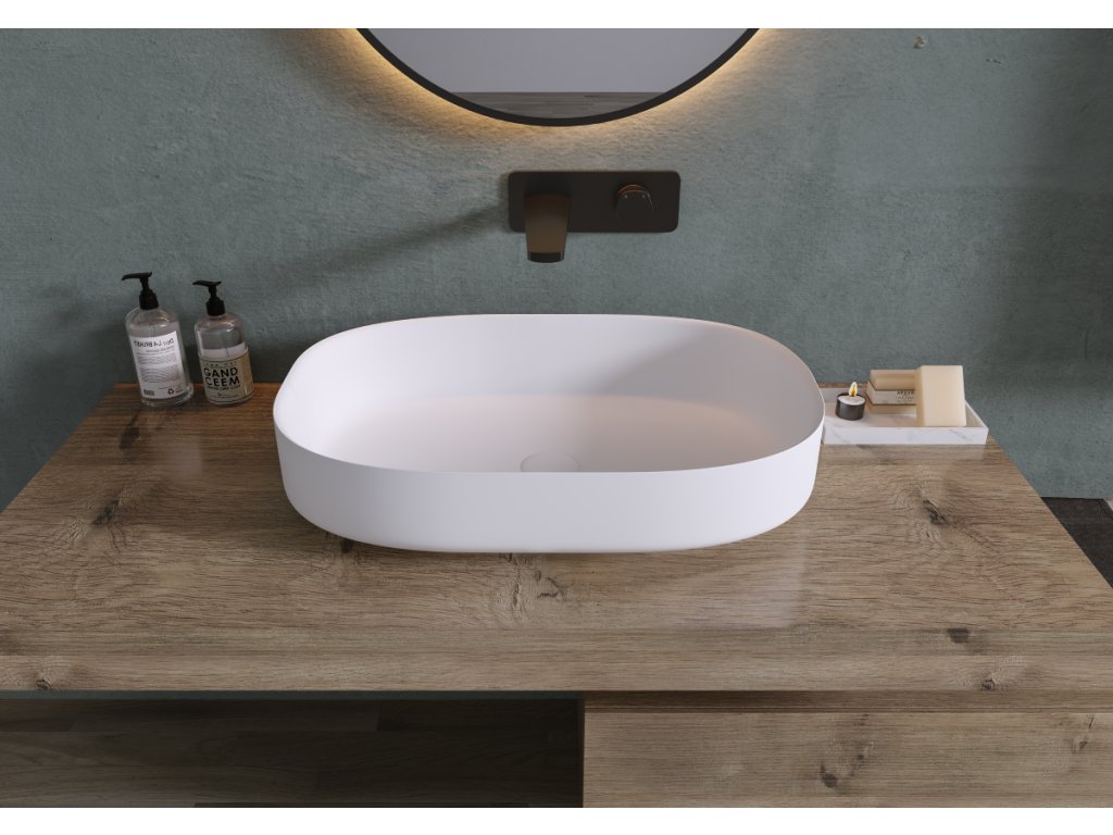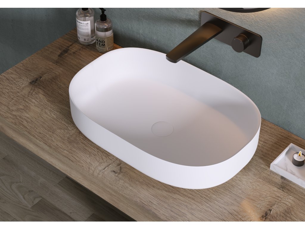 CERANO - Atria öntött márvány mosdó - pulton - matt fehér - 60x40 cm