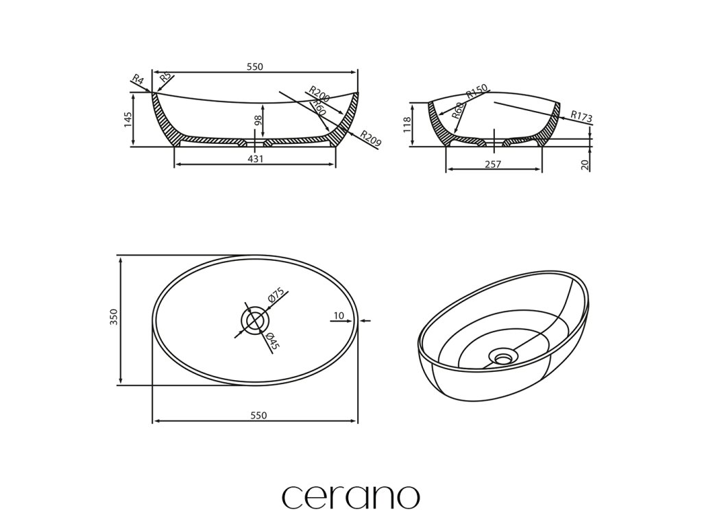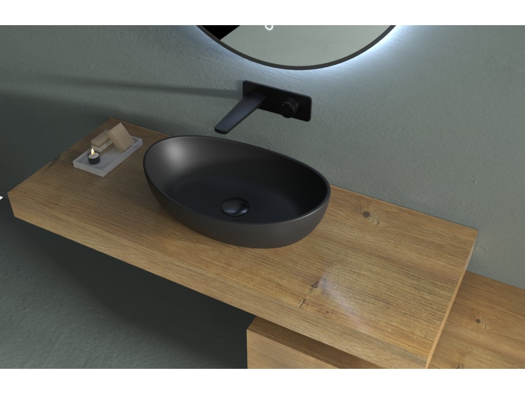 CERANO - Gaia öntött márvány mosogató - pulton - matt fekete - 55x35 cm