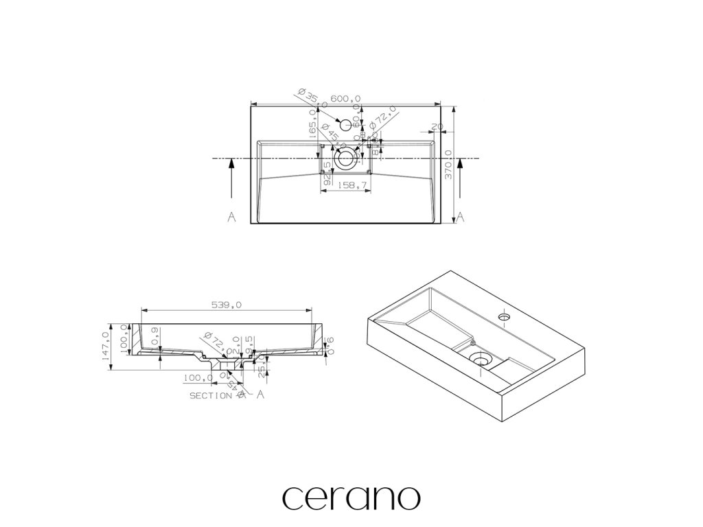 CERANO - Vita öntött márvány mosdó - fali és pultra szerelhető - csaplyukkal - matt fehér - 60x37 cm