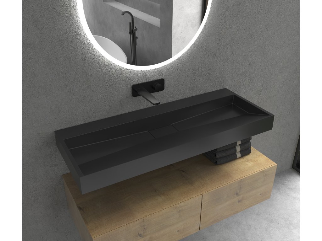 CERANO - Vita öntött márvány mosdó - fali és pultra szerelhető - matt fekete - 100x46 cm