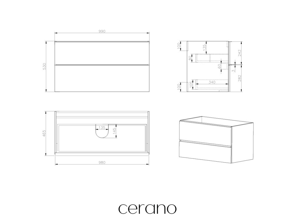 CERANO - Fürdőszobaszekrény mosdó alá Velora fogantyúval - matt fehér, fekete fogantyú - 99x53x46 cm