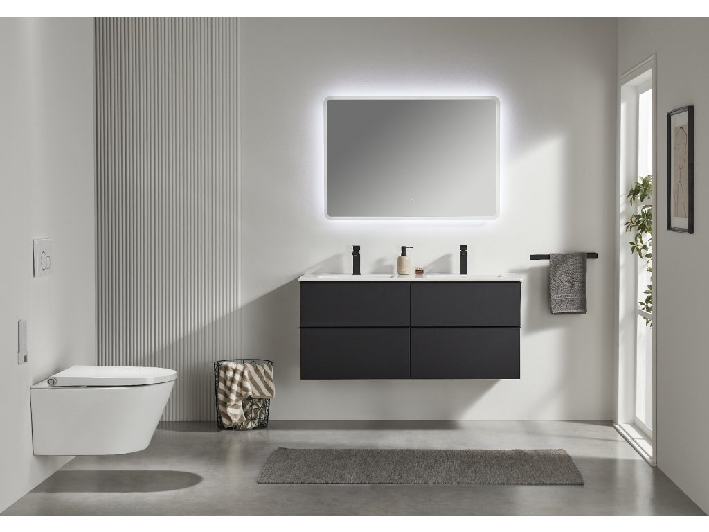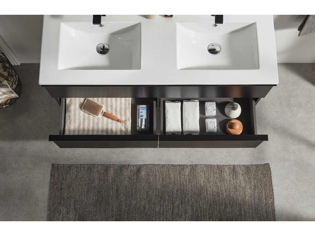 CERANO - Fürdőszobaszekrény mosdó alá Velora fogantyúval - matt fekete, fekete fogantyú - 119x53x45,2 cm