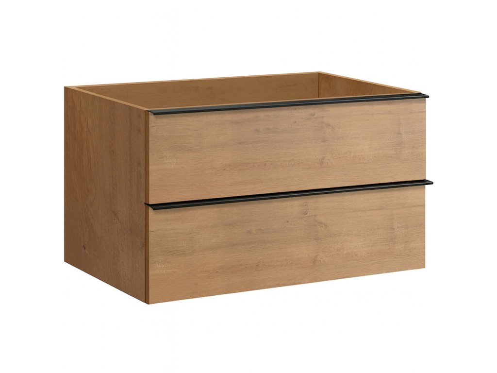 CERANO - Fürdőszobaszekrény mosdó alá Velora fogantyúval - mézes tölgy, fekete fogantyú - 99x53x46 cm