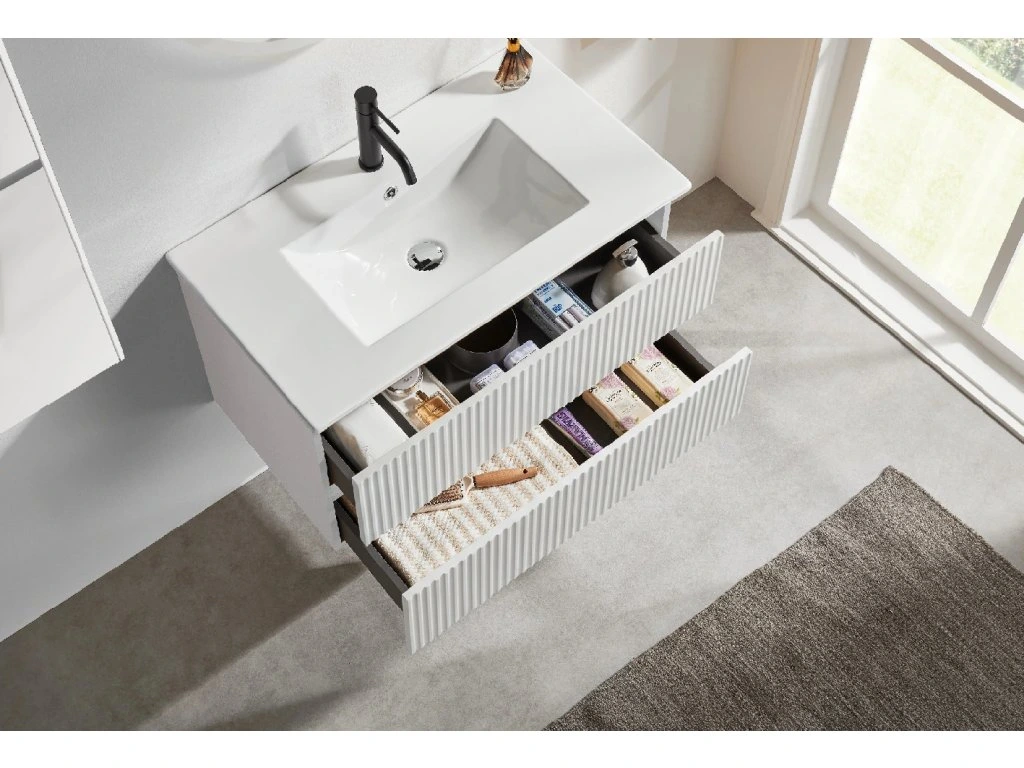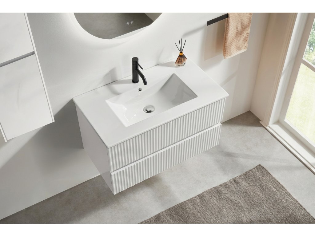 CERANO - Mosdó alatti fürdőszobaszekrény Carole - matt fehér, rovátkolt - 59x48x45 cm