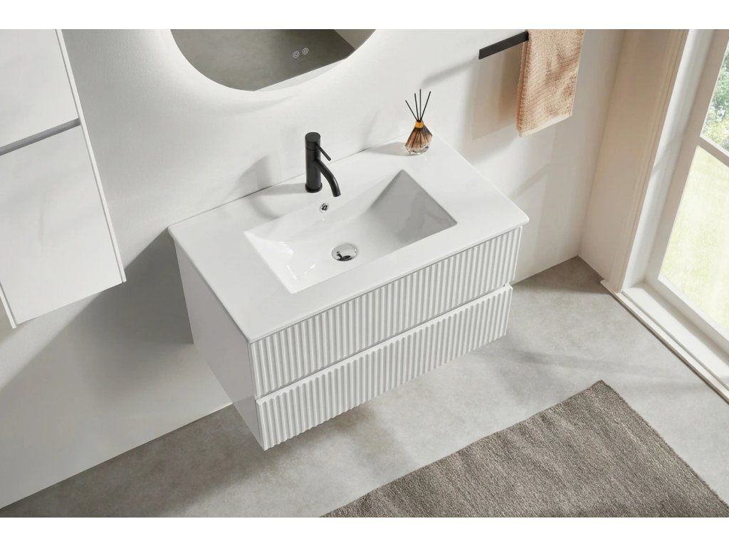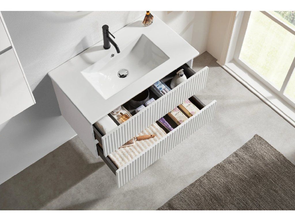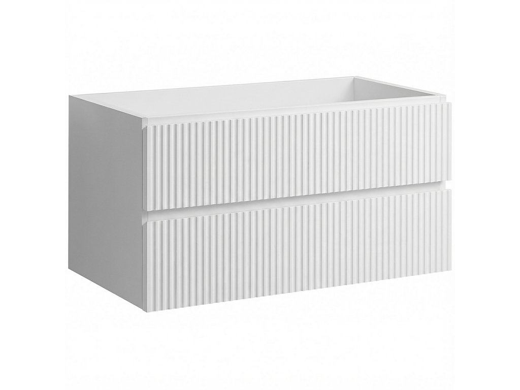 CERANO - Mosdó alatti fürdőszobaszekrény Carole - matt fehér, rovátkolt - 99x48x45 cm