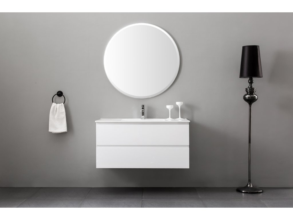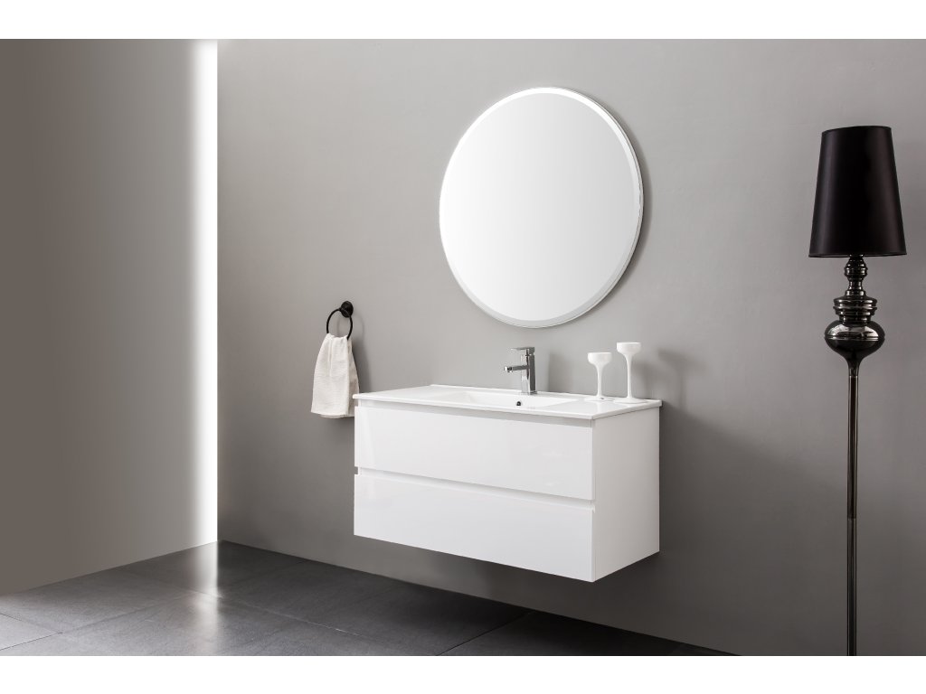 A fürdőszobaszekrények MDF laminátumból (közepes sűrűségű farostlemez) készülnek, préselt melamin fóliával bevonva, amely ellenáll a nedvességnek, a karcolásoknak, az UV-sugárzásnak és a szokásos tisztítószereknek. A felület sima, kemény, homogén és könnyen tisztítható. Az MDF lapok nem vetemednek, mint a tömör fa. Ha a laminátum mechanikai sérülést szenved, maga az MDF mag is nedvessé válhat.