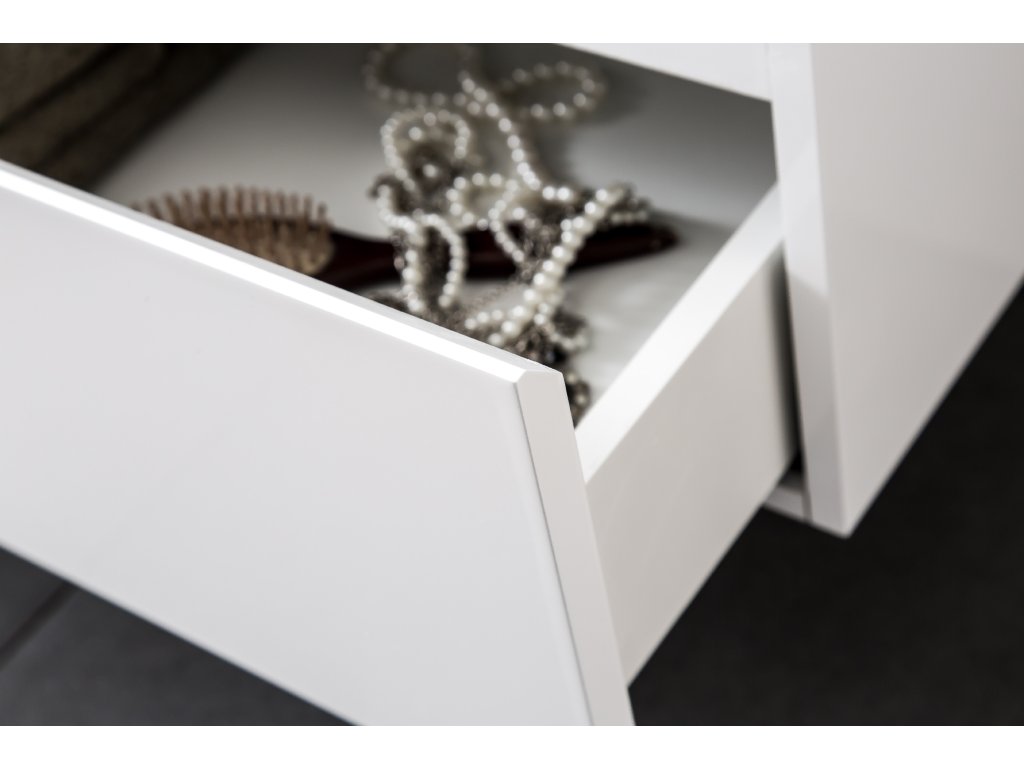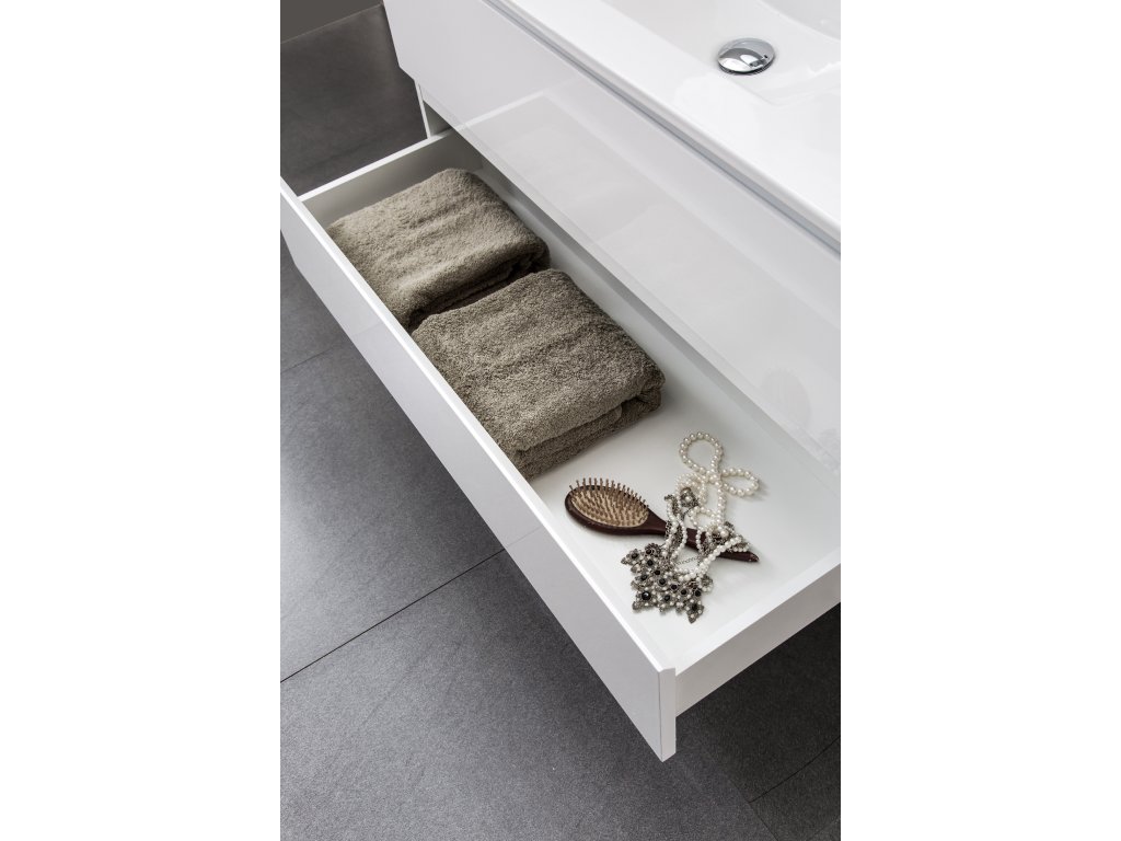 A szekrény falra szerelhető, és állítható szerelvényekkel van felszerelve, amelyek a szekrény testén a felső fríz alatt találhatók, lehetővé téve a magasság és a sík beállítását. A fiókban egy rejtett kivágás található a mosdó szifonjának beépítéséhez.
