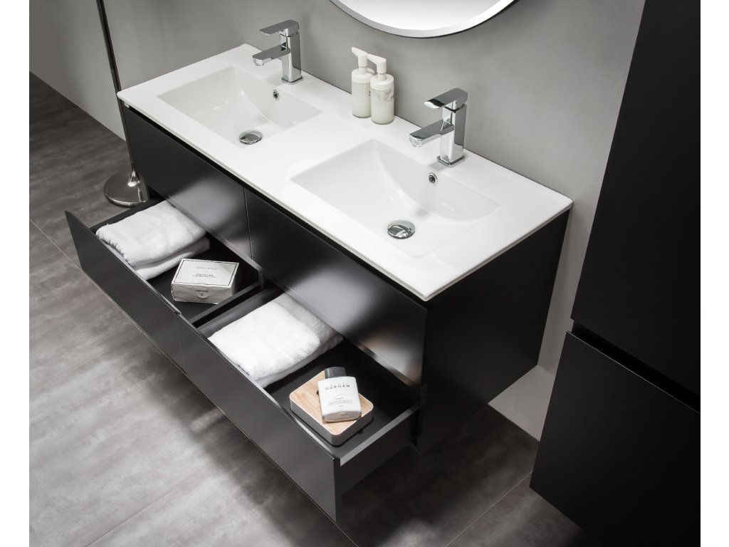 CERANO - Mosdó alatti fürdőszobaszekrény Carole - matt fekete - 119x48x45 cm
