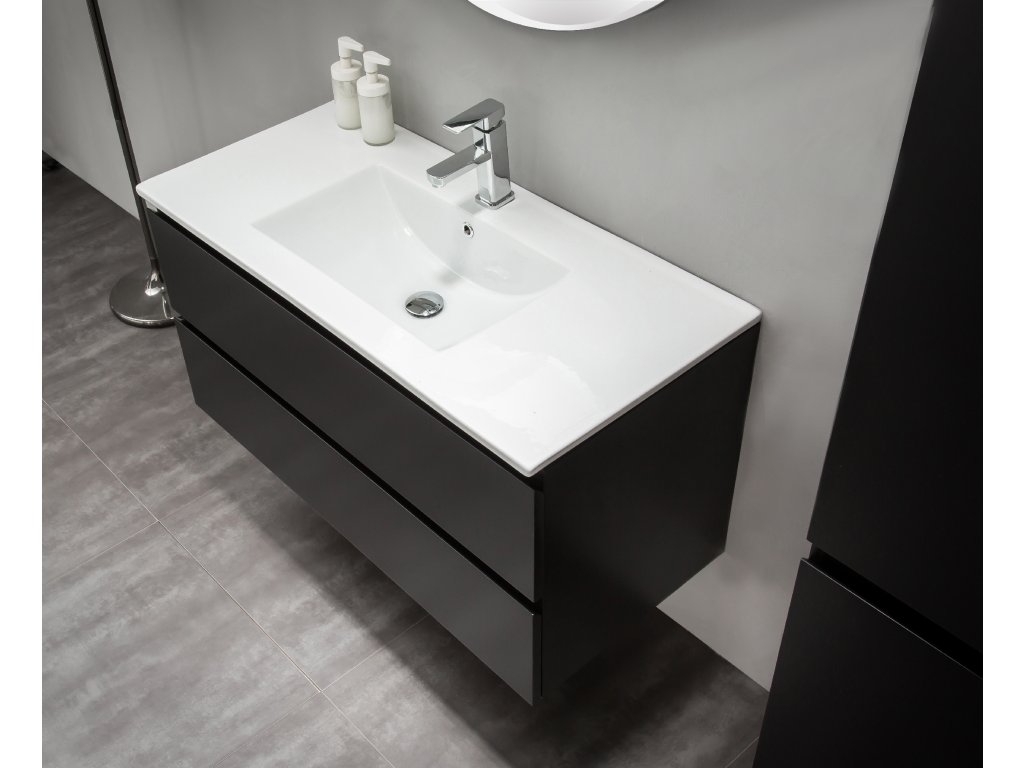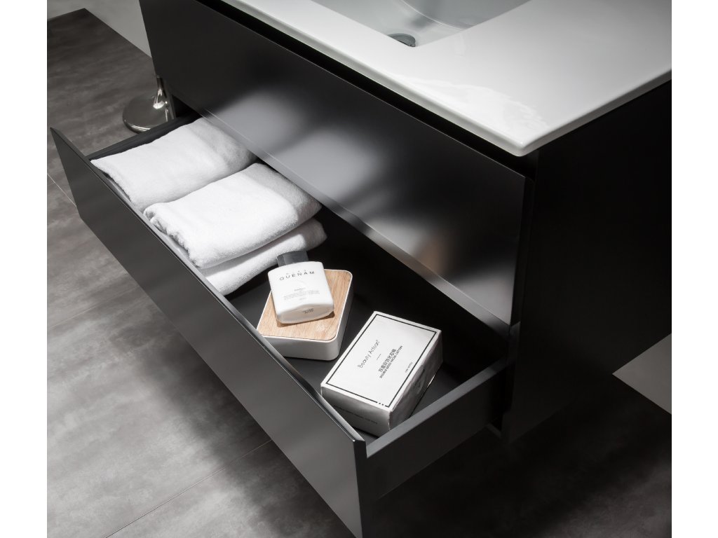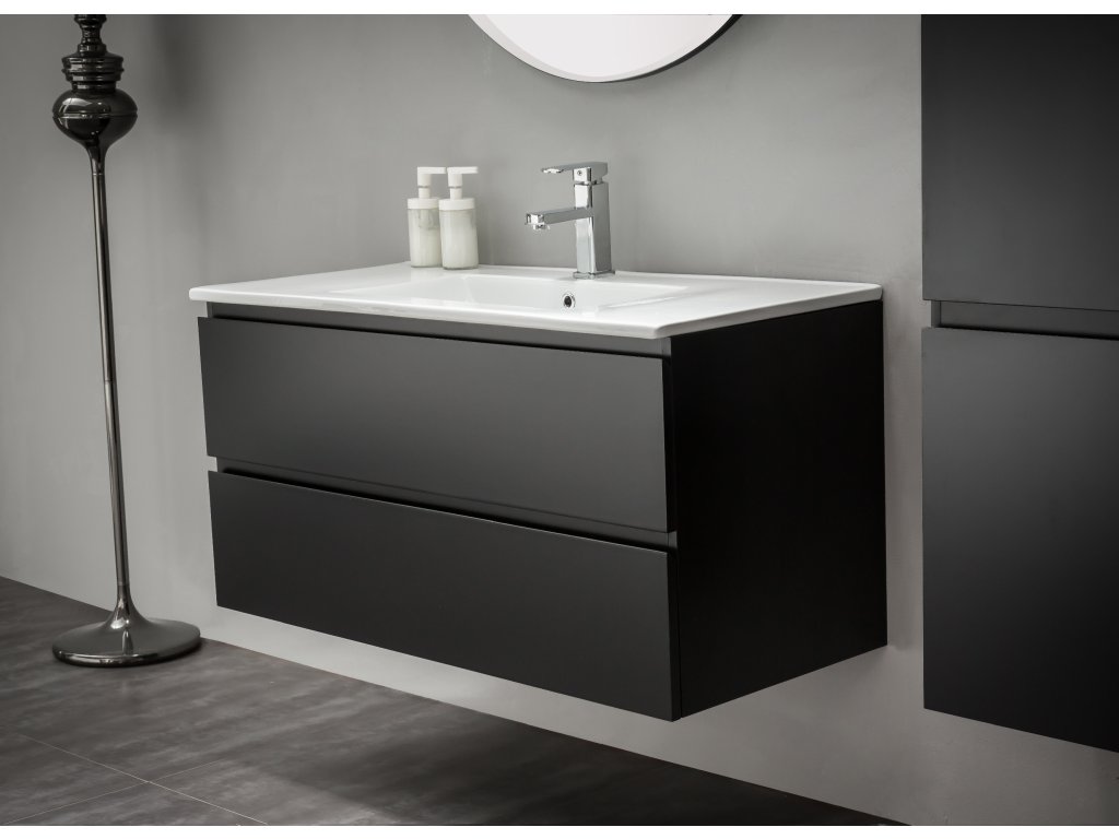 CERANO - Mosdó alatti fürdőszobaszekrény Carole - matt fekete - 99x48x45 cm