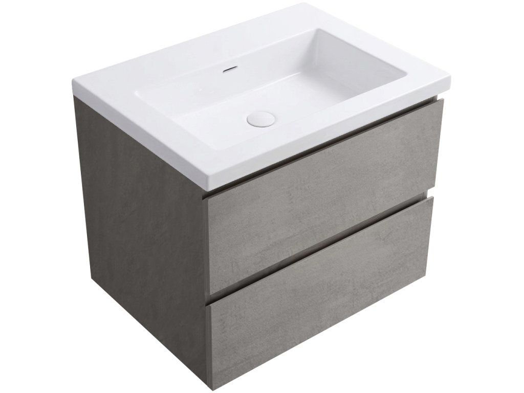 CERANO - Carole fürdőszobaszekrény - betonszürke + Ovo öntött márvány mosdó - fényes fehér - 70,5x53x46,3 cm
