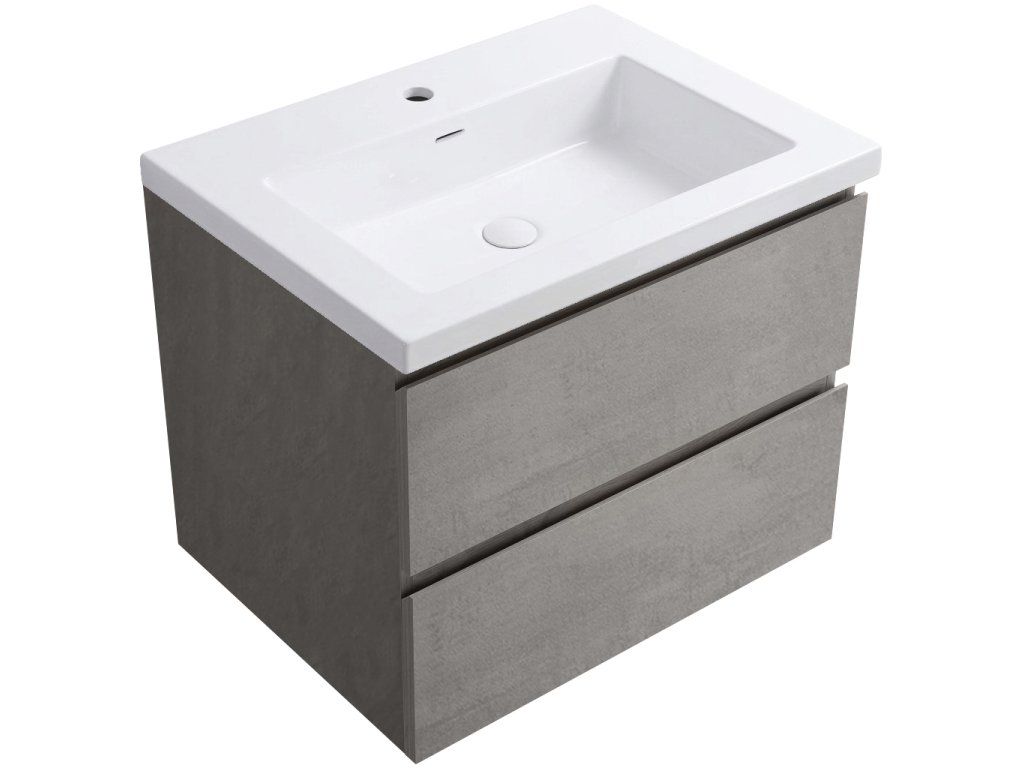 CERANO - Carole fürdőszobaszekrény - betonszürke + Ovo öntött márvány mosdó - fényes fehér - 71x49,5x46,5 cm