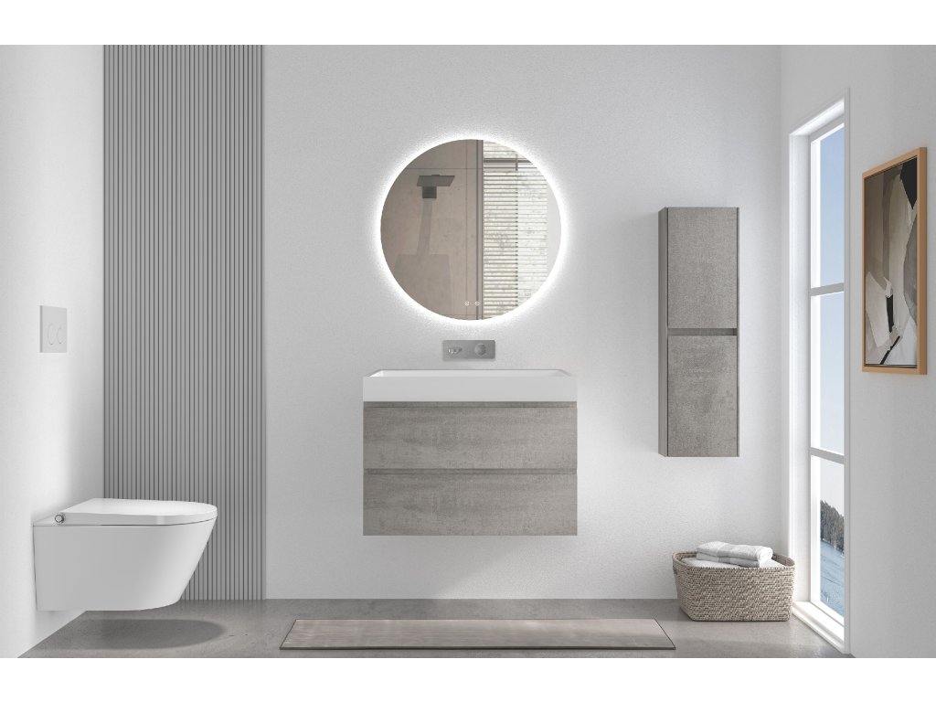CERANO - Carole fürdőszobaszekrény - betonszürke + Vita lit. márvány mosdó - matt fehér - 70x58x46 cm