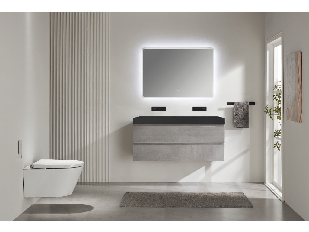 CERANO - Carole fürdőszobaszekrény - betonszürke + Vita lit. márvány mosdó - matt fekete - 100x58x46 cm