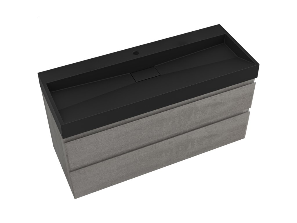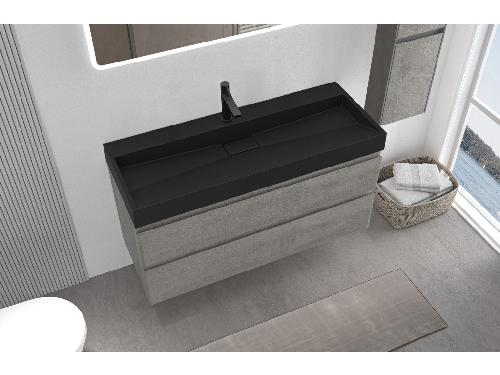CERANO - Carole fürdőszobaszekrény - betonszürke + Vita lit. márvány mosdó - nyílással - matt fekete - 100x58x46 cm