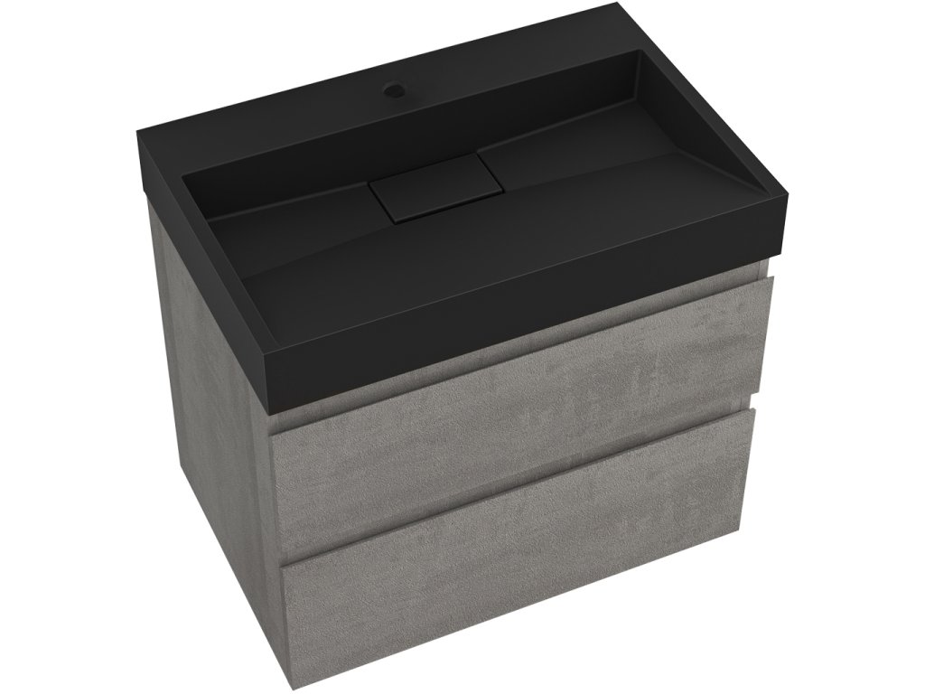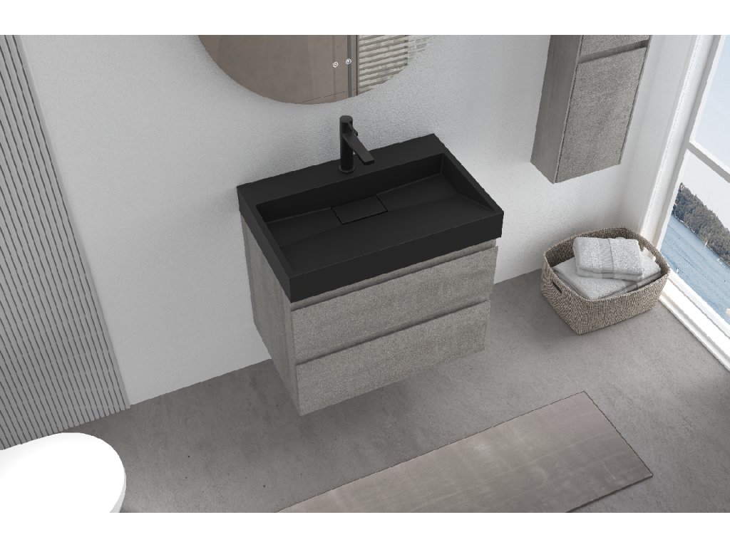 CERANO - Carole fürdőszobaszekrény - betonszürke + Vita lit. márvány mosdó - nyílással - matt fekete - 70x58x46 cm
