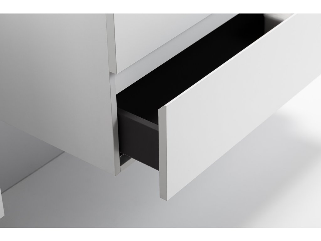 A fürdőszobaszekrények MDF laminátumból (közepes sűrűségű farostlemez) készülnek, préselt melamin fóliával bevonva, amely ellenáll a nedvességnek, a karcolásoknak, az UV-sugárzásnak és a szokásos tisztítószereknek. A felület sima, kemény, homogén és könnyen tisztítható. Az MDF lapok nem vetemednek, mint a tömör fa. Ha a laminátum mechanikai sérülést szenved, maga az MDF mag is nedvessé válhat.