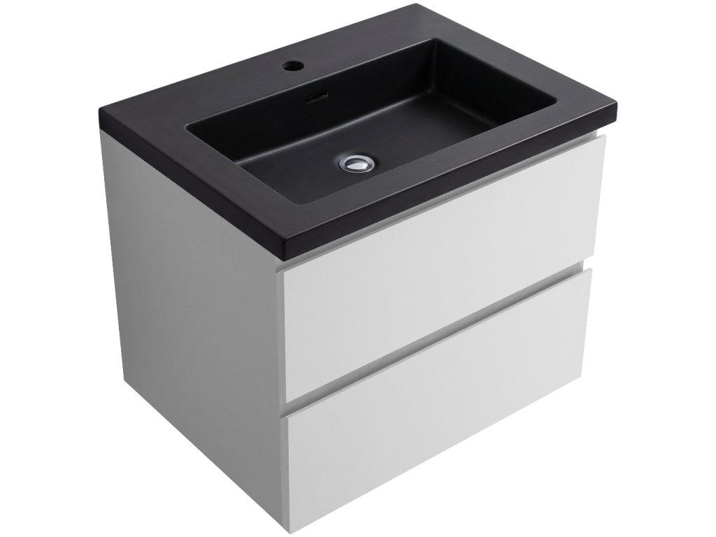 CERANO - Carole fürdőszobaszekrény - matt fehér + mosdó világító Ovo márványból - matt fekete - 61x49,5x46,5 cm