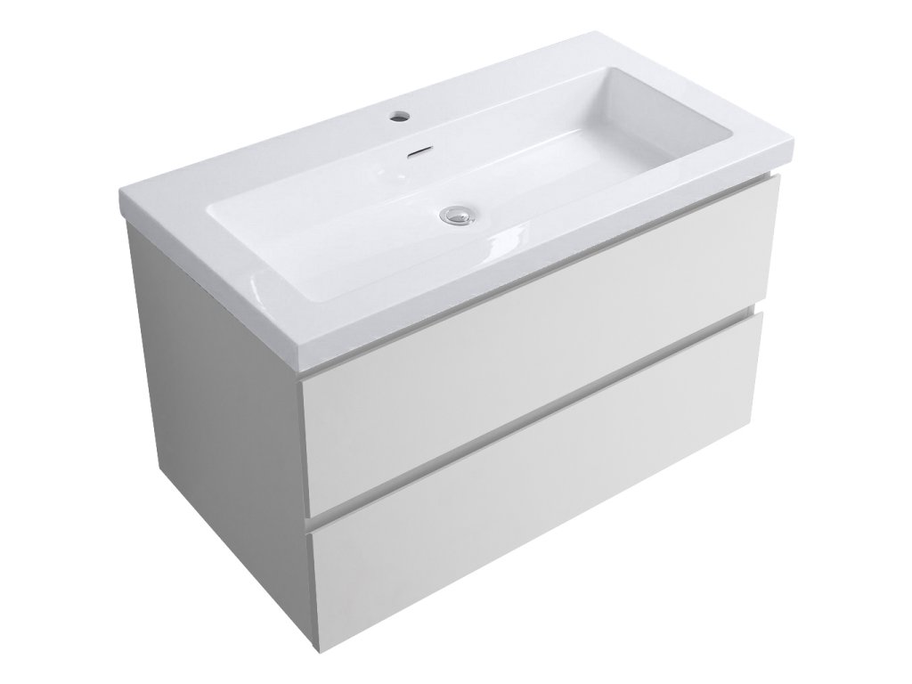 CERANO - Carole fürdőszobaszekrény - matt fehér + mosdó világos Ovo márványból - fényes fehér - 101x49,5x46,5 cm
