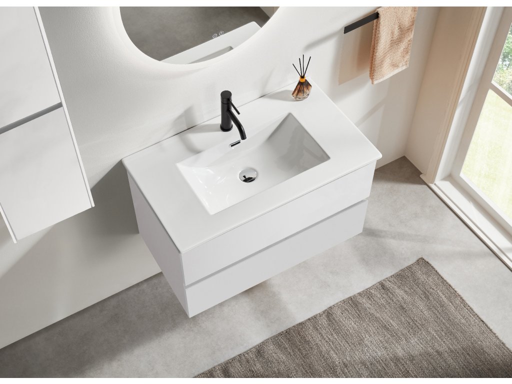 CERANO - Carole fürdőszobaszekrény - matt fehér + Novo kerámia mosdó - fényes fehér - 71x49,5x46,5 cm