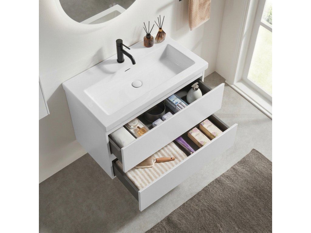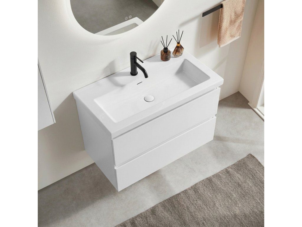 CERANO - Carole fürdőszobaszekrény - matt fehér + Ovo márvány mosdó - fényes fehér - 81x49,5x46,5 cm
