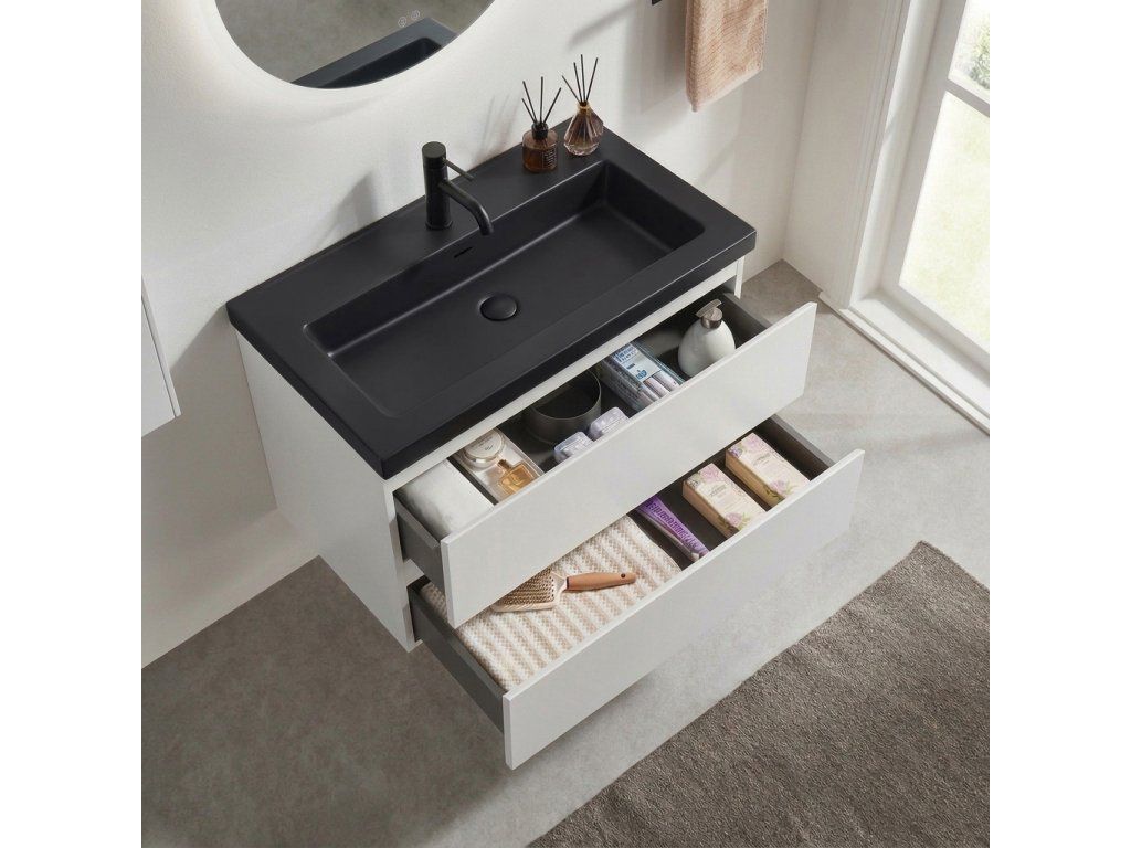 CERANO - Carole fürdőszobaszekrény - matt fehér + Ovo márvány mosdó - matt fekete - 70,5x53x46,3 cm