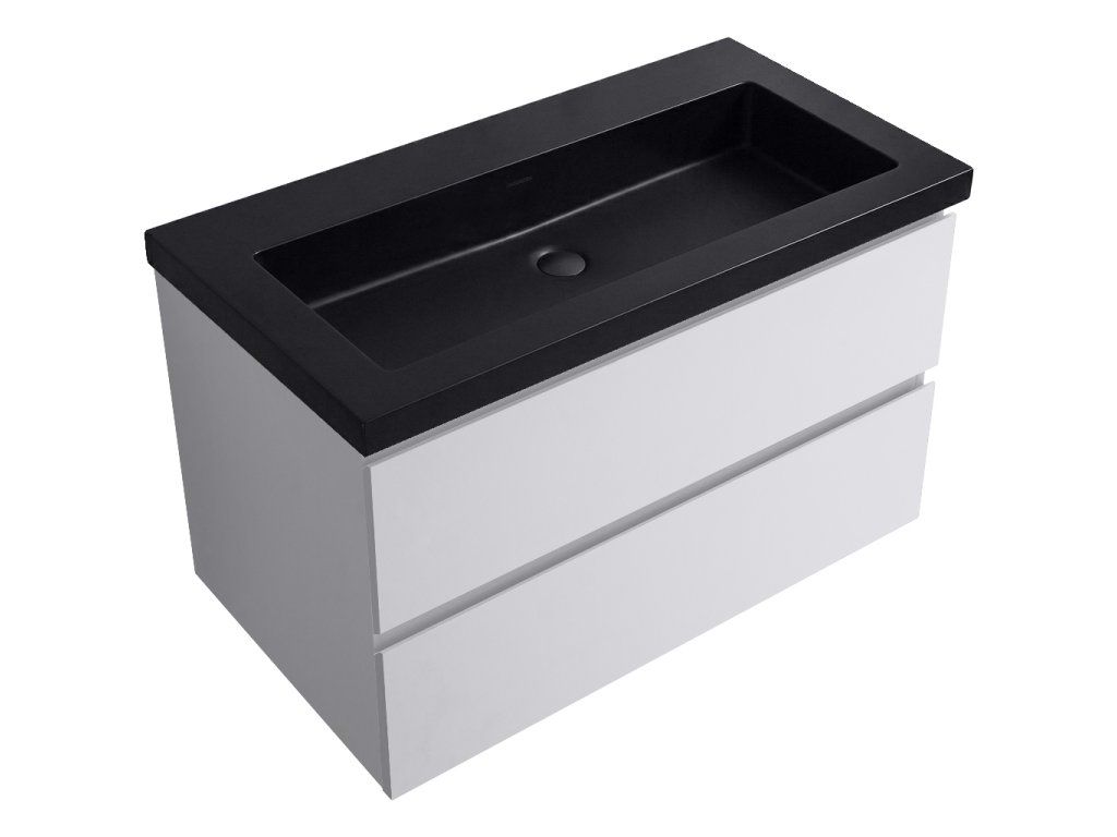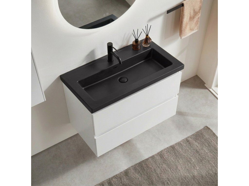 CERANO - Carole fürdőszobaszekrény - matt fehér + Ovo márvány mosdó - matt fekete - 80,5x53x46,3 cm