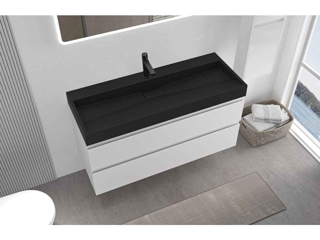 CERANO - Carole fürdőszobaszekrény - matt fehér + Vita lit. márvány mosdó - nyílással - matt fekete - 100x58x46 cm