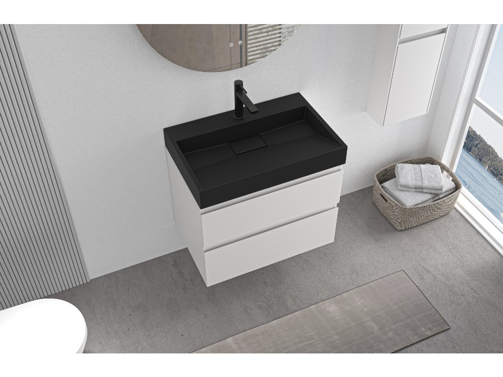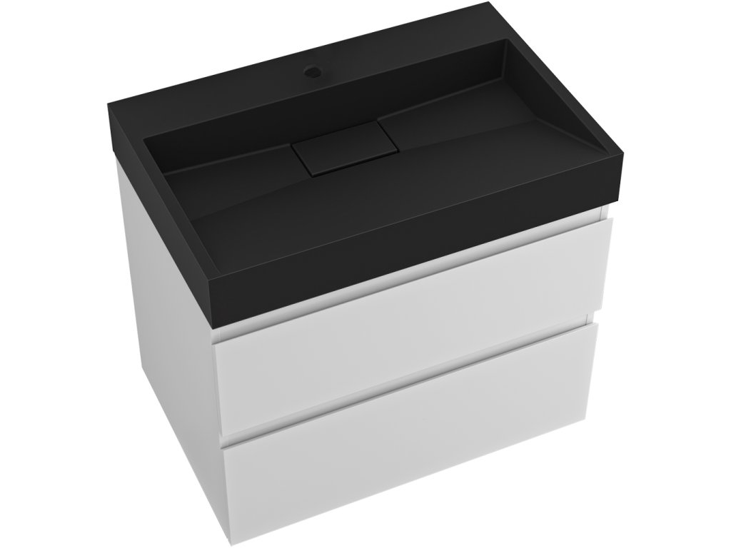 CERANO - Carole fürdőszobaszekrény - matt fehér + Vita lit. márvány mosdó - nyílással - matt fekete - 70x58x46 cm