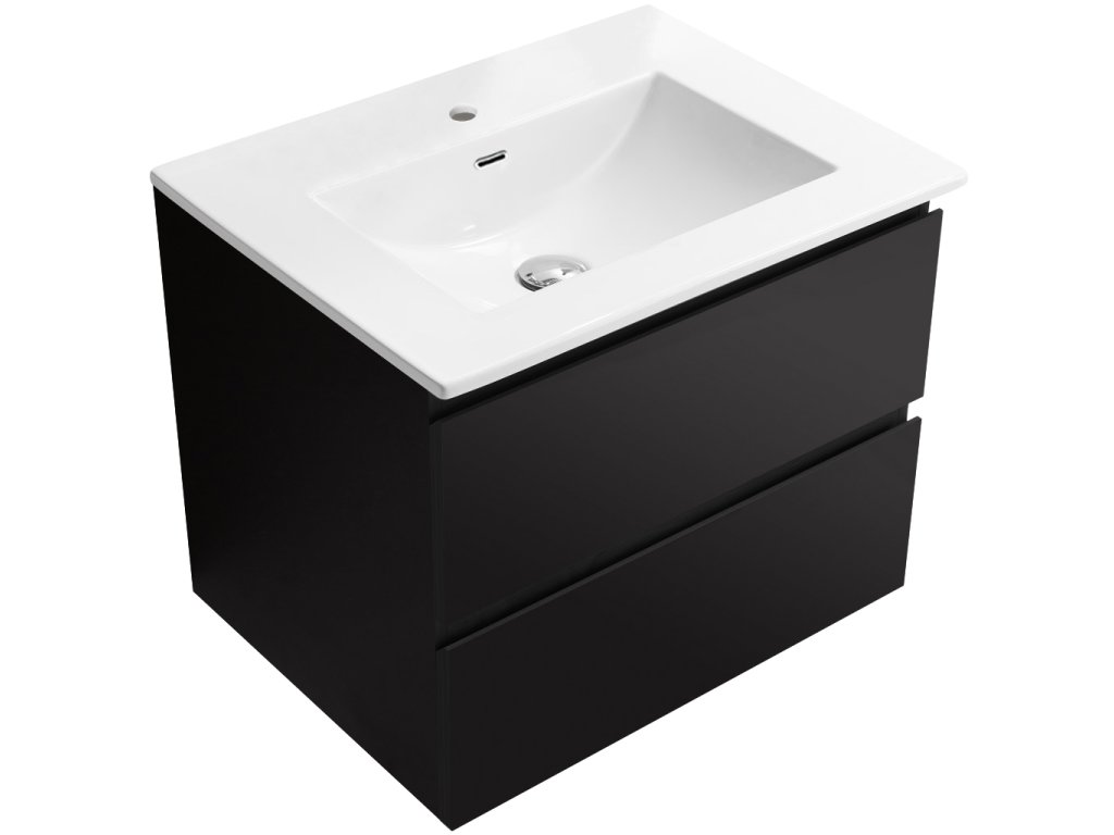 CERANO - Carole fürdőszobaszekrény - matt fekete + Novo kerámia mosdó - fényes fehér - 71x49,5x46,5 cm