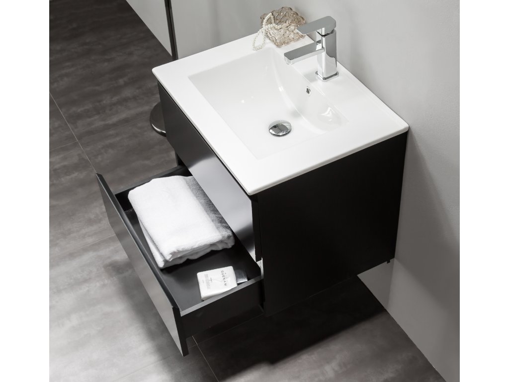 CERANO - Carole fürdőszobaszekrény + Todo kerámia mosdó - matt fekete - 61x49,5x46,5 cm