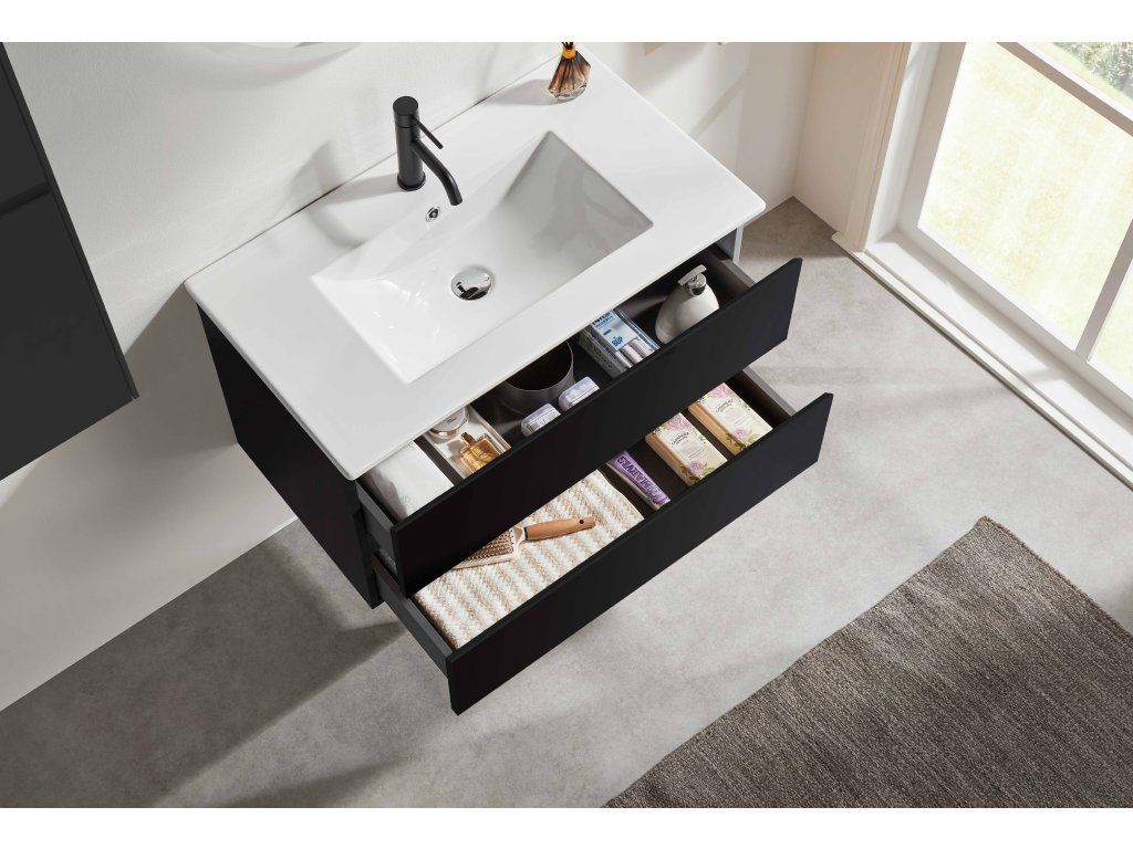 CERANO - Carole fürdőszobaszekrény + Todo kerámia mosdó - matt fekete - 61x50x46,5 cm