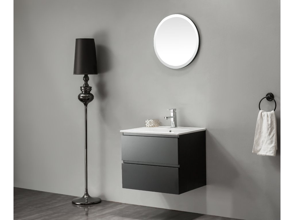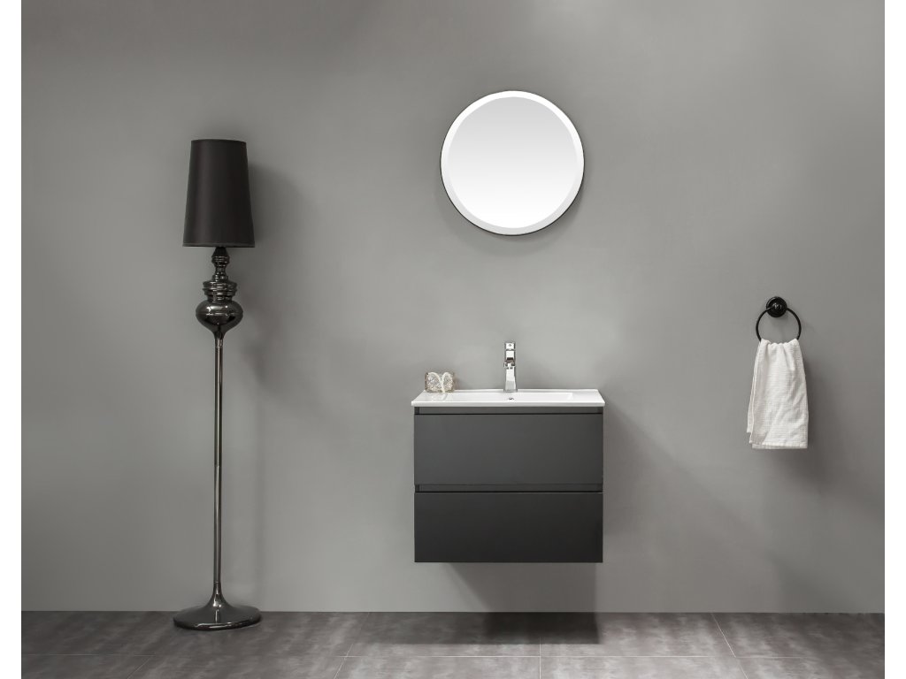 CERANO - Carole fürdőszobaszekrény + Todo kerámia mosdó - matt fekete - 71x49,5x46,5 cm