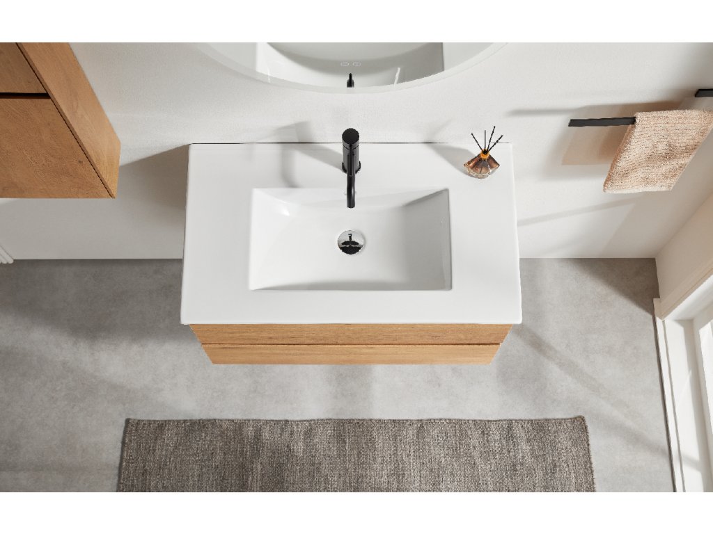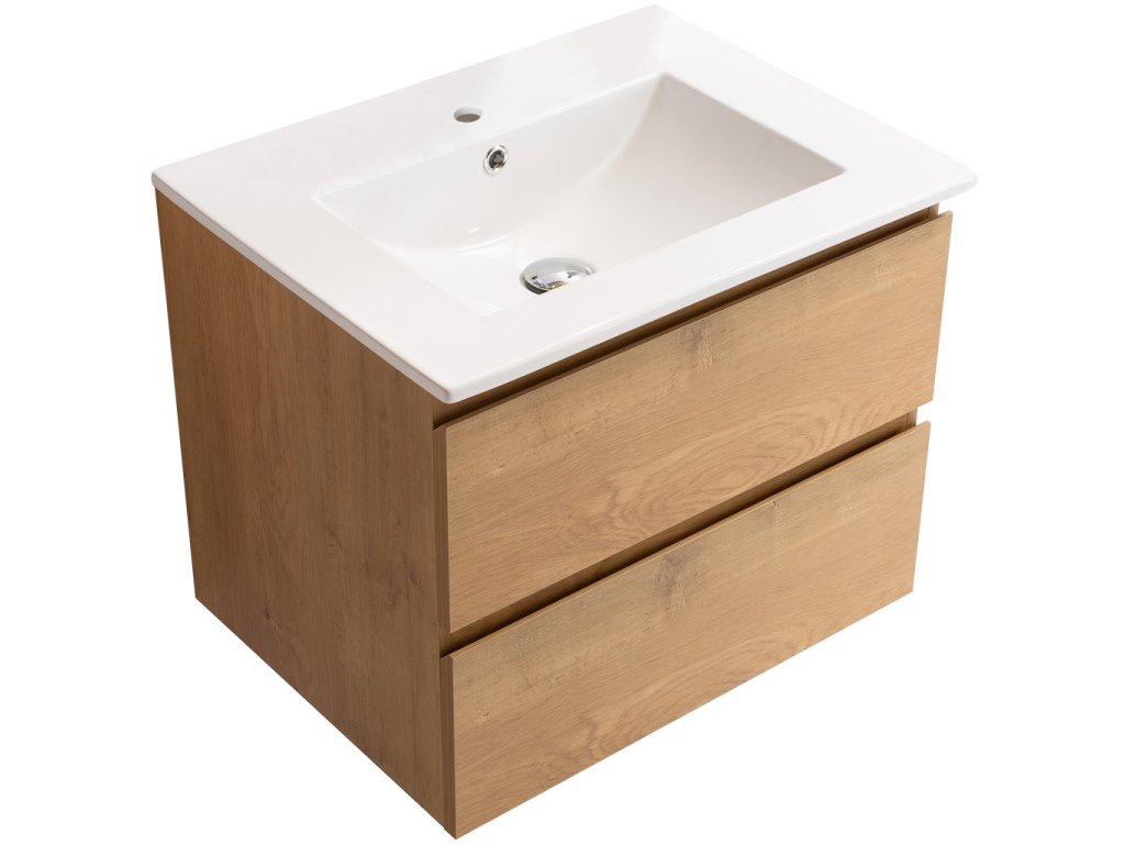 CERANO - Carole fürdőszobaszekrény + Todo kerámia mosdó - mézes tölgyfa - 71x49,5x46,5 cm